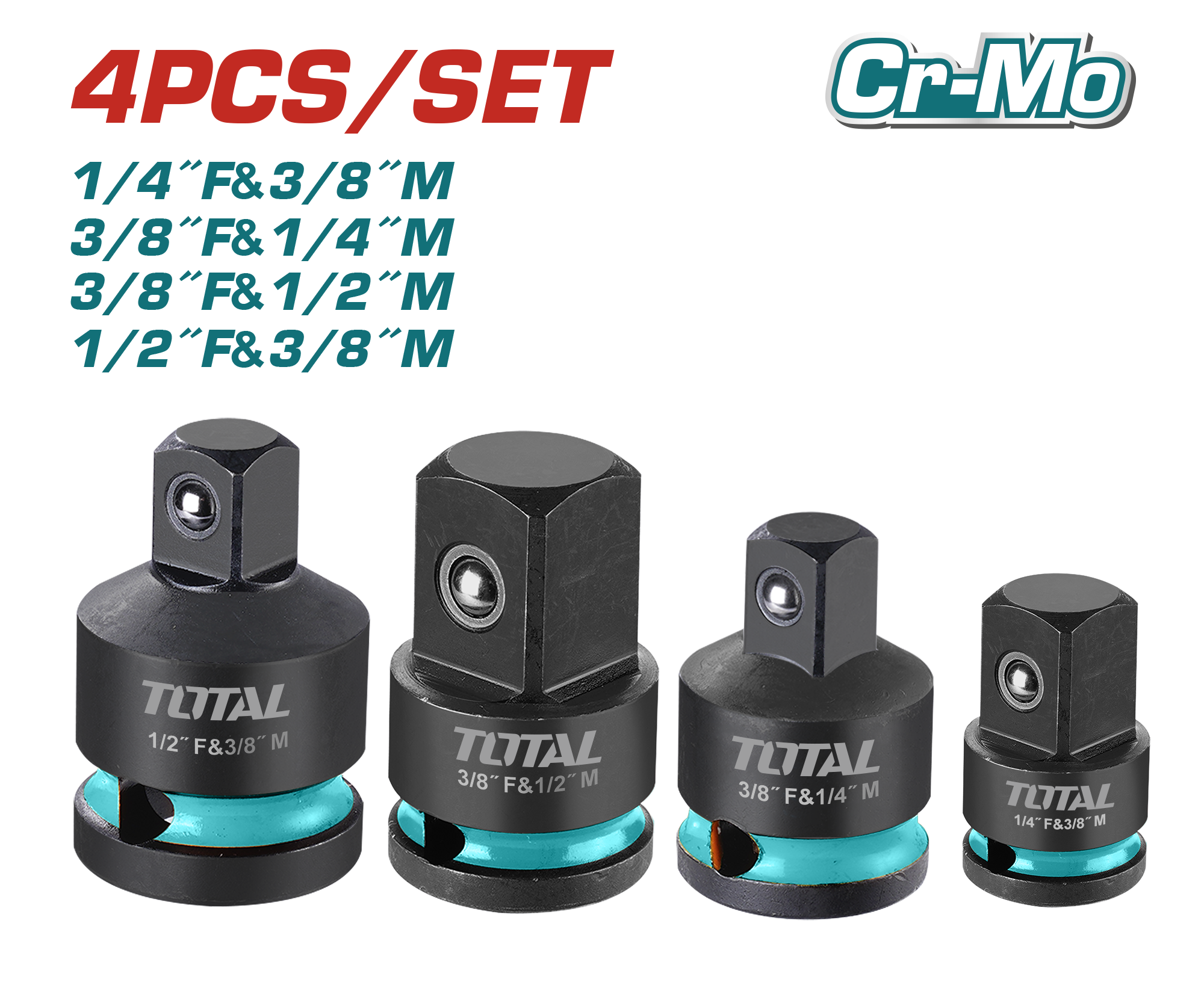 - Set: 4 Pcs Impact Socket Adapters