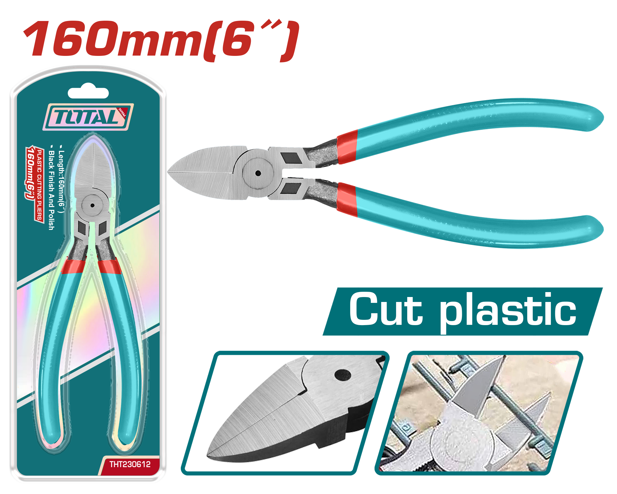 The TOTAL Plastic Cutting Pliers (THT230612) are specially designed for clean and precise cutting of plastic materials. With a compact 6-inch (160mm) size, these pliers offer excellent control and accuracy, making them ideal for detailed cutting work.