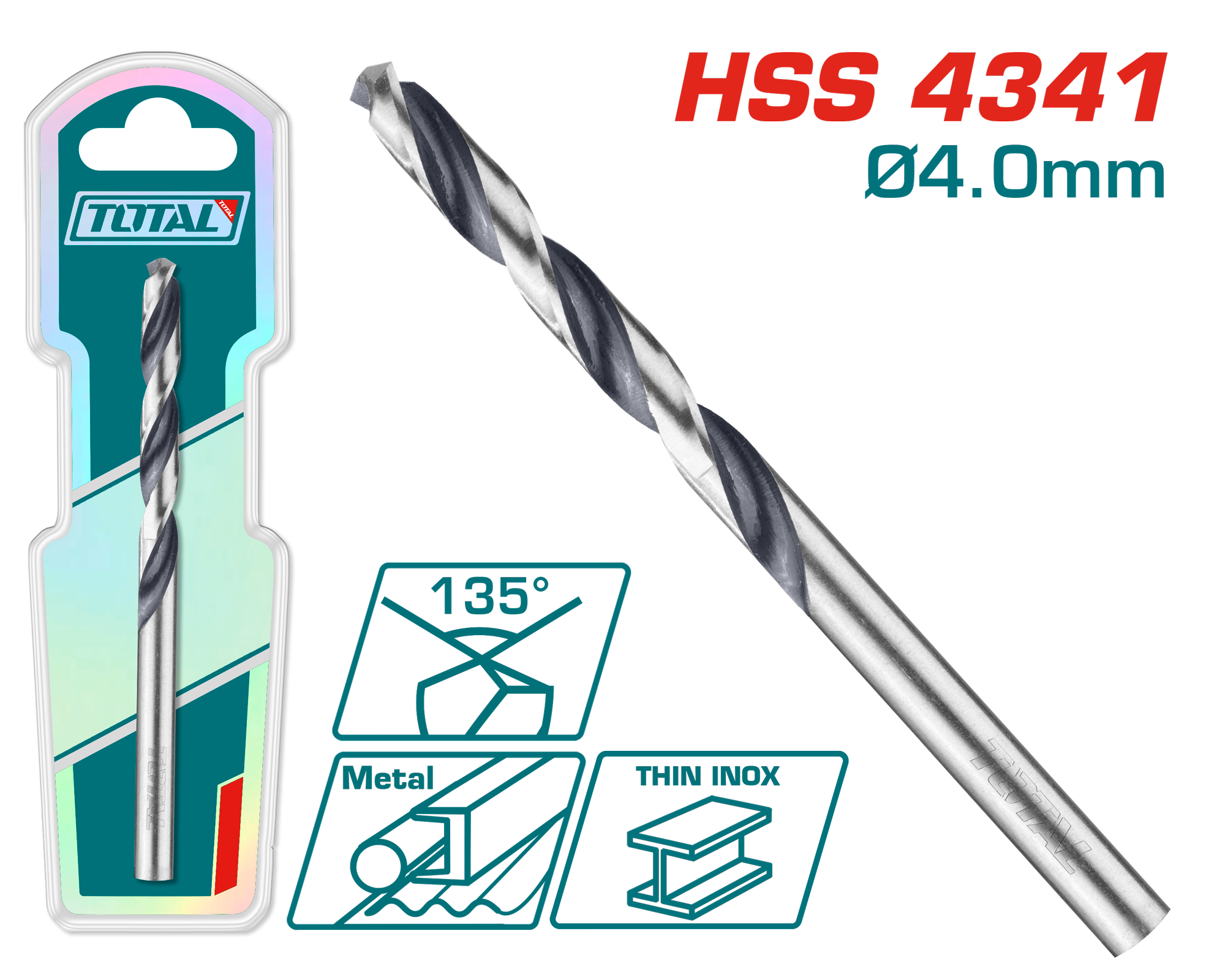 The TOTAL Industrial HSS 4341 Drill Bit (TAC1200404) is designed for precise and efficient drilling in metal, wood, and plastic materials. Made from high-quality HSS 4341 high-speed steel, this drill bit offers excellent durability, heat resistance, and long service life. The 135° split point tip improves drilling accuracy and reduces slipping, allowing faster penetration and smooth operation. Ideal for professional workshops, industrial use, and DIY applications.