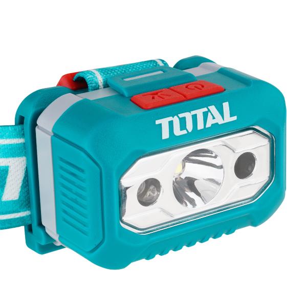 The TOTAL LED Headlamp (THL013AAA6) is a compact and reliable lighting solution designed for hands-free operation in various environments. With a maximum brightness of 200 lumens and a beam distance of up to 91 meters, it provides clear visibility for outdoor activities, maintenance work, and emergency use.