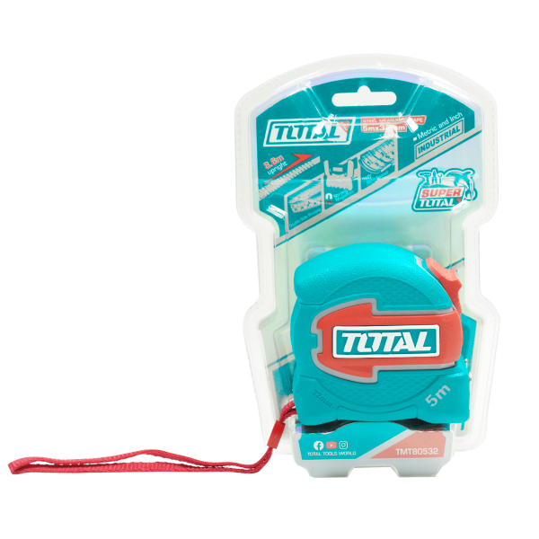 The TOTAL Steel Measuring Tape (TMT80532) is a durable and precise measuring tool designed for construction, carpentry, and general-purpose measurement tasks. With a 5-meter length and 32mm wide blade, it offers excellent stability, smooth operation, and clear readability.