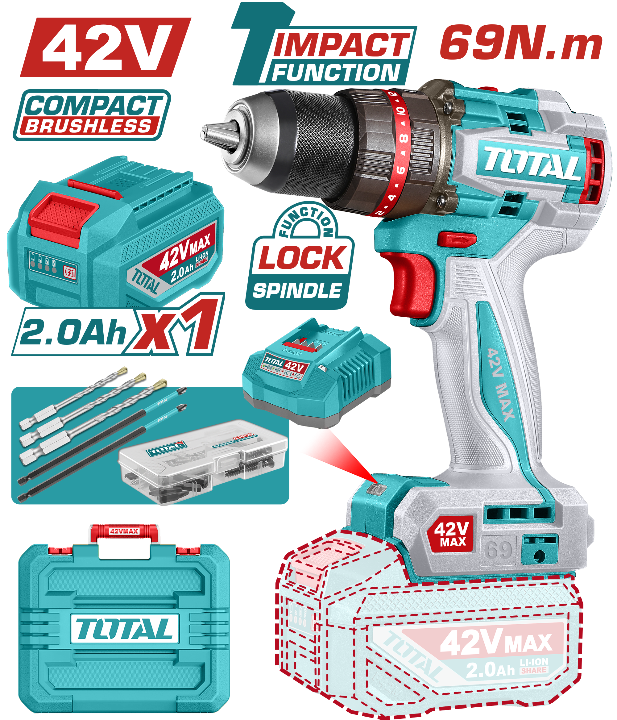 - 1 × 42V Cordless Impact Drill