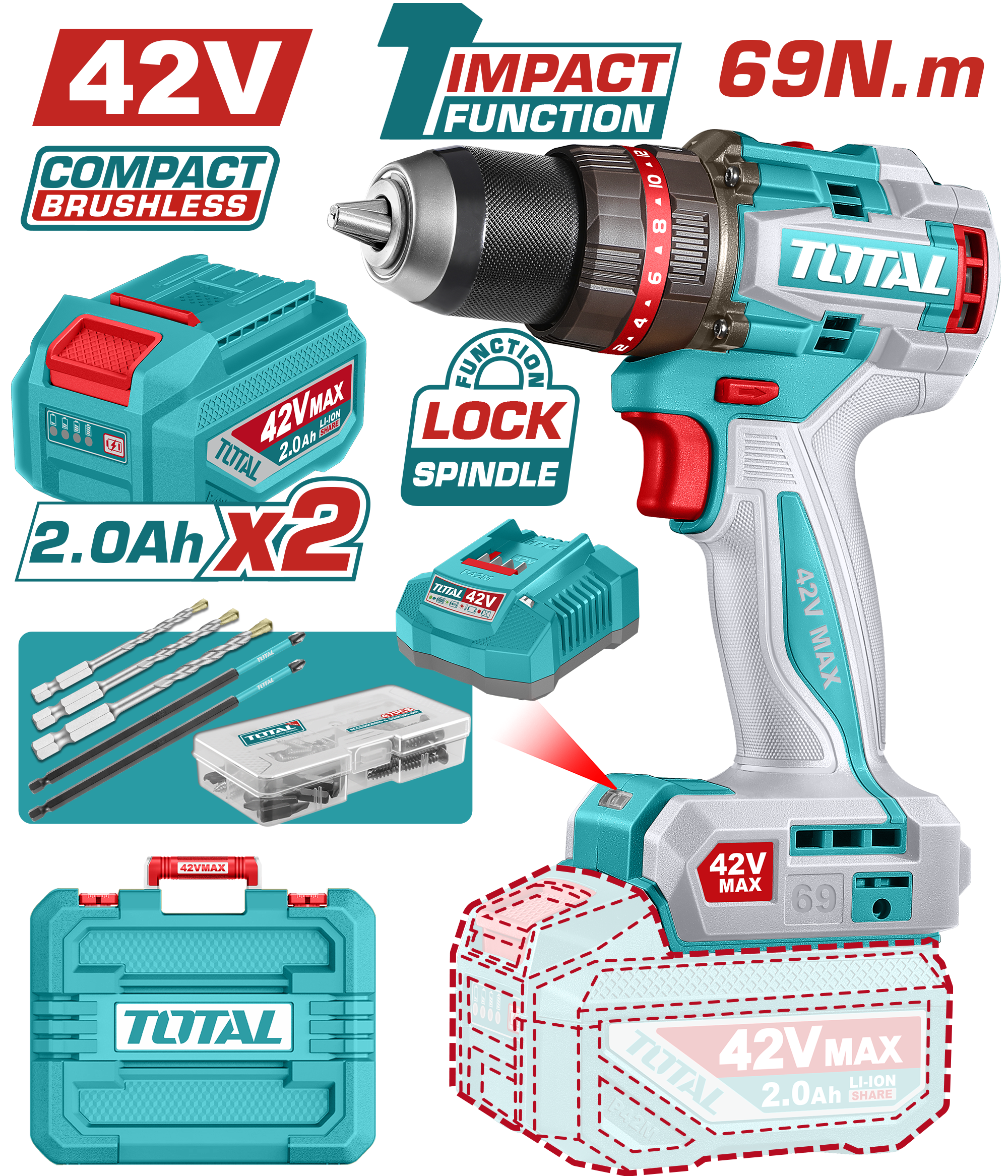 TOTAL TIDLI426982 42V Brushless Cordless Impact Drill Kit
